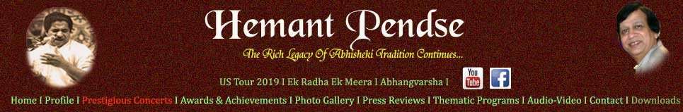 - Pt.Jitendra Abhisheki Music Festival Goa, Pune, Bhopal.(Organized by “Tarangini Pratishthan”)